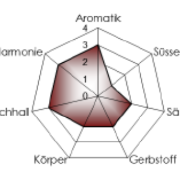 Farbe: Schillerndes Dunkelrot, markante Violettreflexe, farbdicht. Aromatik: Intensives, reiches Bukett, reif-fruchtig, an Waldbeeren erinnernd, im Finale ein warmer, röstiger Hauch, subtile Barriquenote mit feiner Würze. Körper: Langer Antrunk, trocken mit präsenter Säure und Mineralität, mittelkräftiger, rassiger Körper mit facettenreicher Aromatik und markierenden Gerbstoffen im Abgang. Qualität: Wein mit unverwechselbarer Identität.
